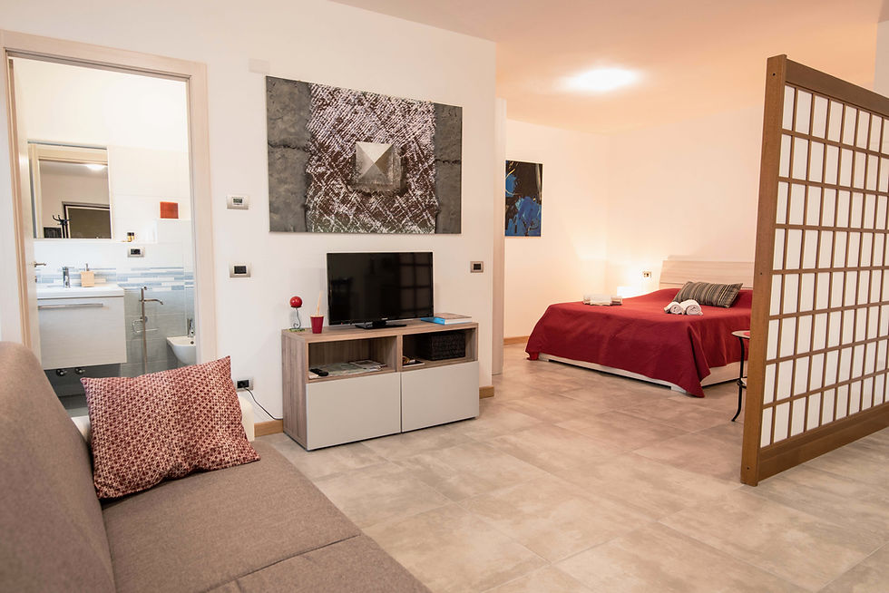 Im Inneren finden Sie moderne Möbel, Küchenzeile, kostenloses WLAN, Smart-TV (nur eine der Unterkünfte), ein eigenes Bad, kostenlose Parkplätze und eine Klimaanlage.
